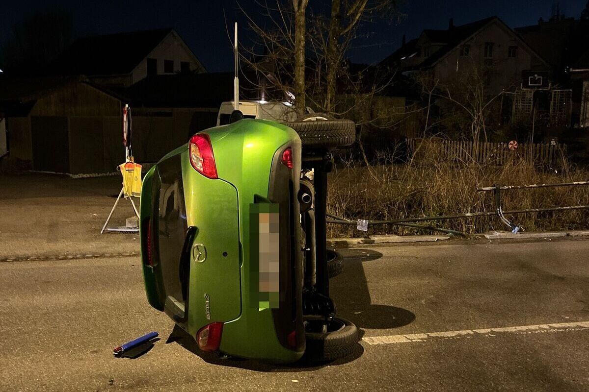 Dabei kippte das Auto auf die Seite, bevor es quer zur Strasse zum Stillstand kam. Der Fahrzeuglenker konnte das Auto selbständig und unverletzt verlassen. Wie sich zeigte, dürfte er das Auto in alkoholisiertem Zustand gelenkt haben.
