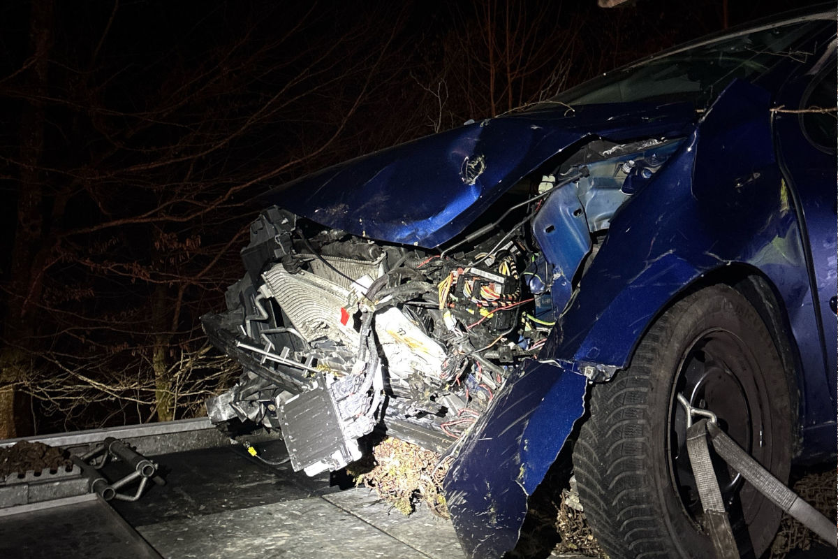 Aus noch zu klärenden Gründen kam sie im Ausserortsbereich von der Strasse ab und rutschte seitlich gegen die Lüssel, wo sie an der dortigen Böschung zum Stillstand kam.