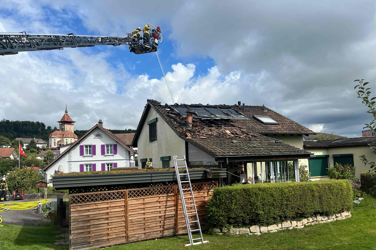Am Samstag, 30. August 2025, kurz nach 10.15 Uhr, wurde der Kantonalen Alarmzentrale gemeldet, dass an der Neufeldstrasse in Niedergösgen das Dach eines Einfamilienhauses brenne.