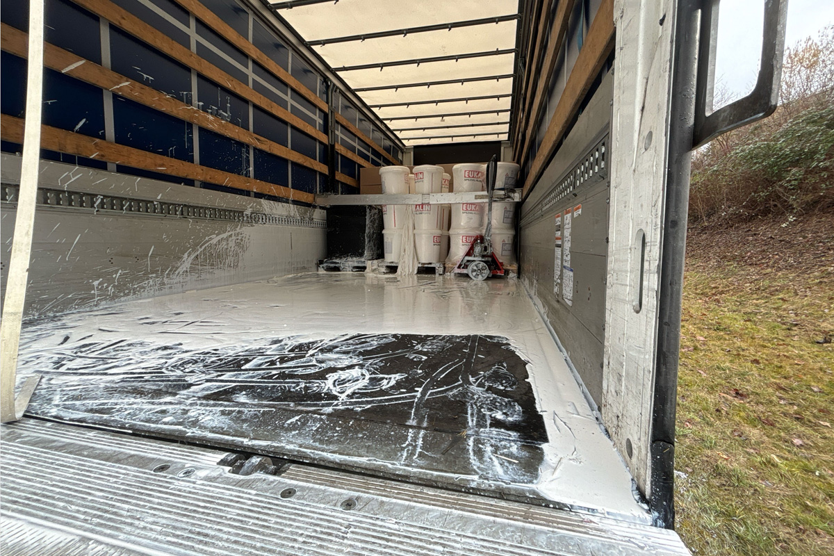 Die Ladefläche seines Lastwagens war mit Kunststoffeimern, welche mit Spezialkleber befüllt waren, beladen. Diese sind während der Fahrt umgekippt und der Kleber floss anschliessend auf die Fahrbahn.